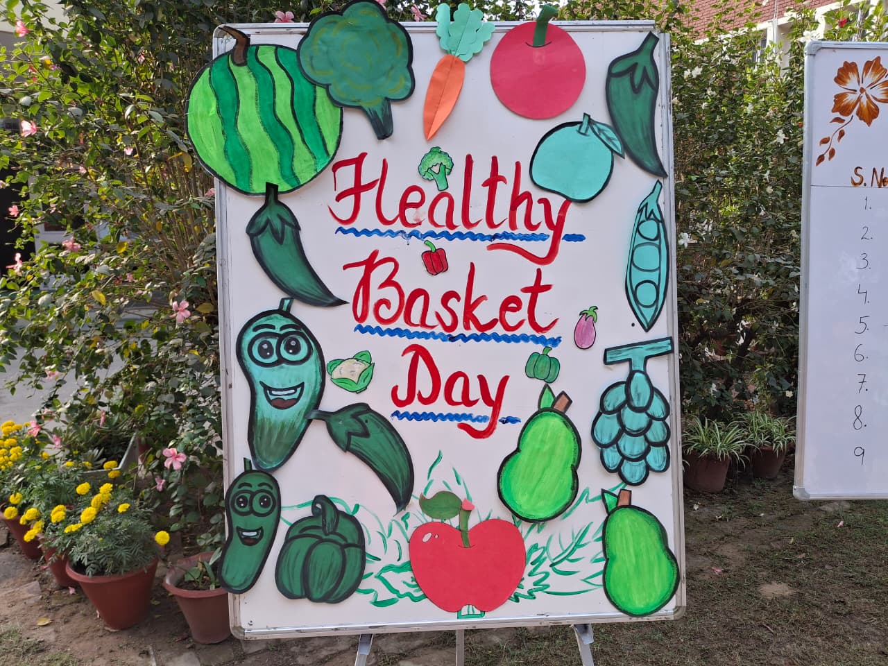 The school conducted a meaningful Healthy Basket Day activity where a vegetable vendor was invited with a variety of fresh vegetables and fruits, giving students a real market experience. Children from Classes 1 to 5 brought money, checked the rate list, and made purchases independently, learning practical money management. Kindergarten students, accompanied by parents, explored the names, colours, and shapes of different fruits and vegetables. The activity encouraged experiential learning, confidence, and the inculcation of good eating habits, ensuring joyful participation from all students.
