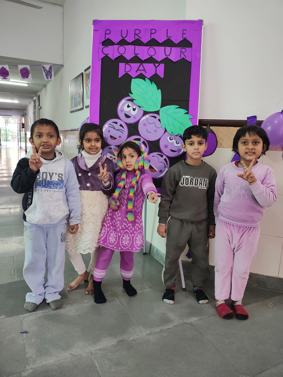 Our Kindergarten students joyfully celebrated Purple Colour Day with fun-filled activities and creative learning experiences. The little ones explored the beauty of the colour purple through engaging crafts, making lovely grapes clusters and lavender flowers. The classrooms and corridors were adorned in vibrant shades of purple, adding excitement to the celebration. Through hands-on art, games, and colour-based activities, children learned to identify and appreciate the colour while enjoying a memorable and colourful day.