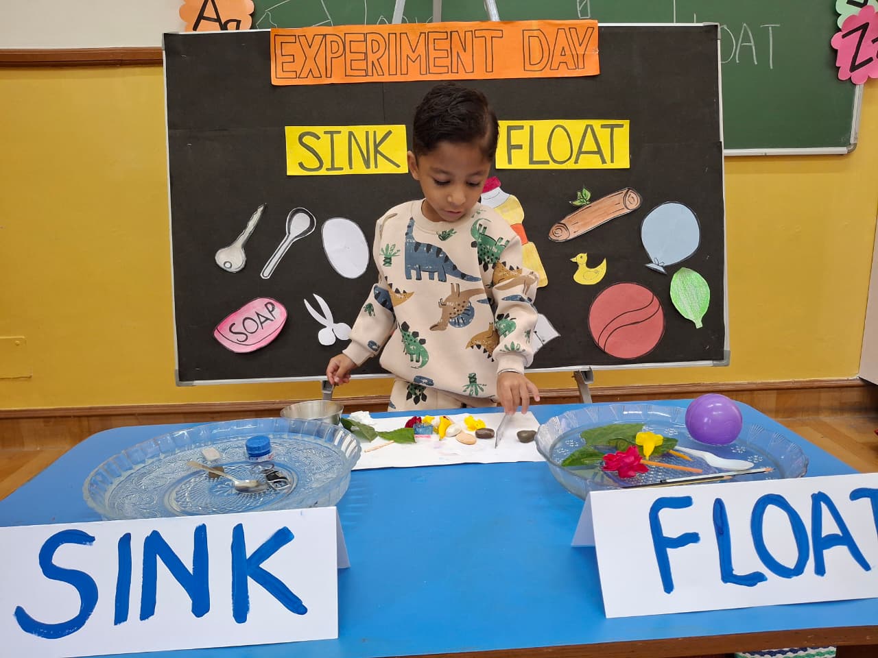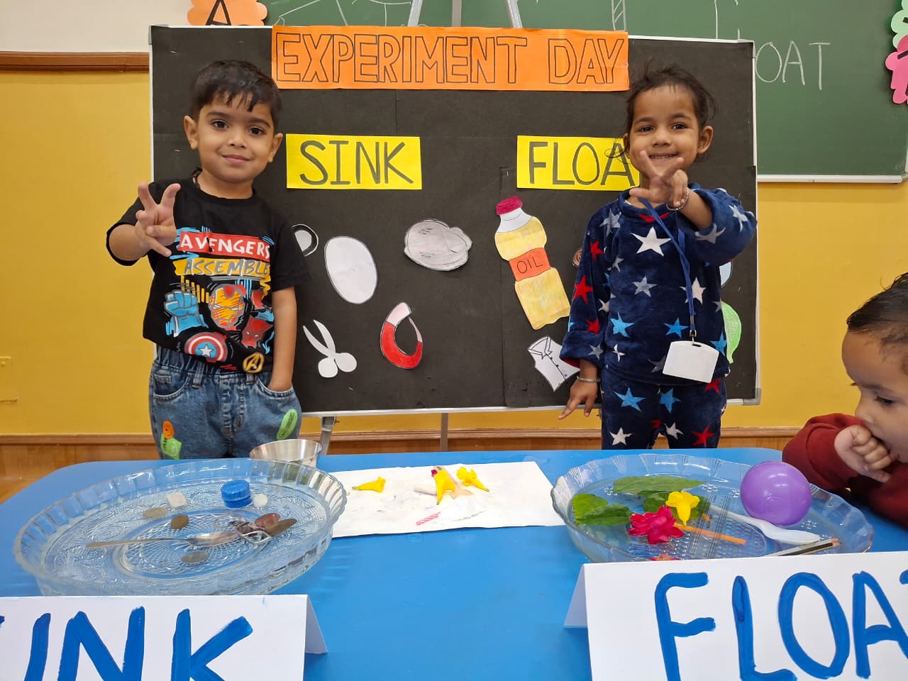 Our little scientists excitedly gathered around a bowl of water to explore which objects would sink or float. Each child took turns testing different items and predicting the results. Through this fun, hands-on activity, they learned basic science concepts while practicing teamwork, communication, and critical thinking skills.