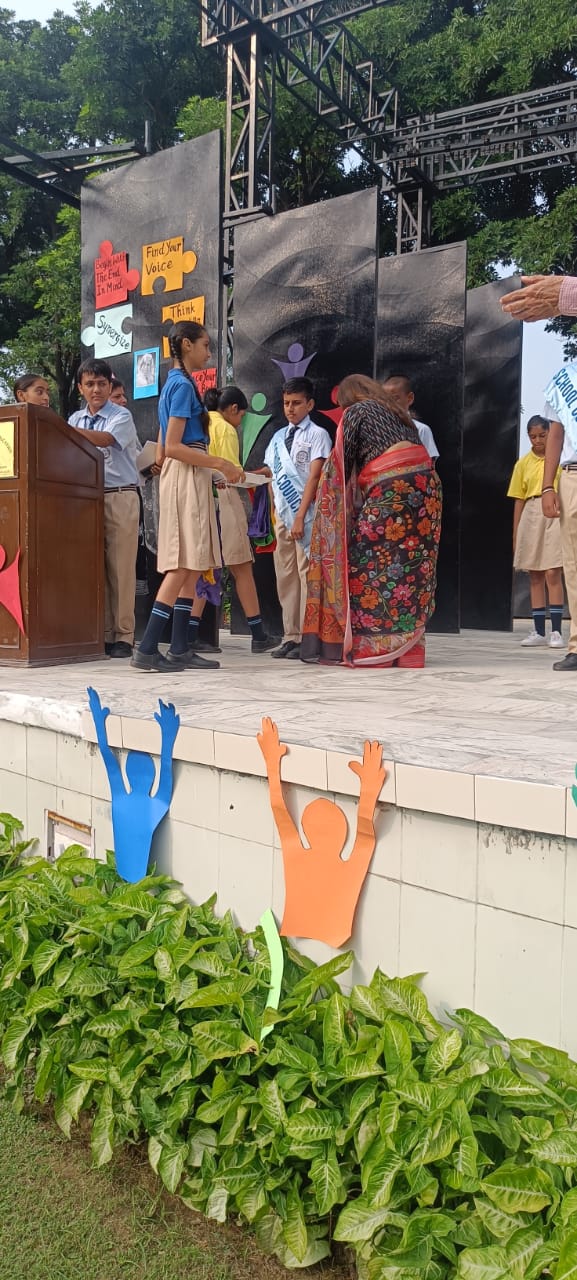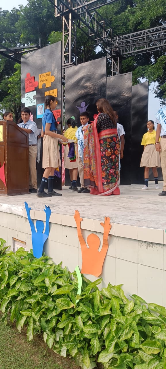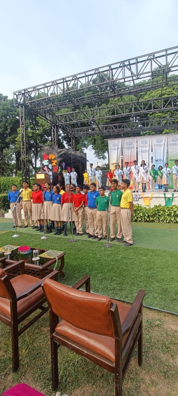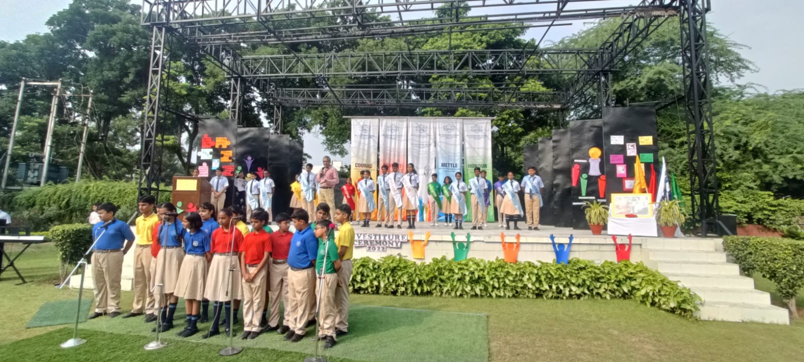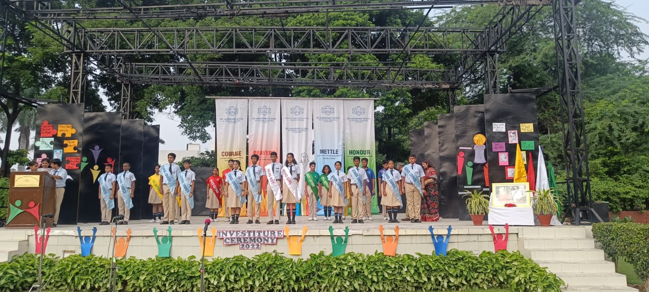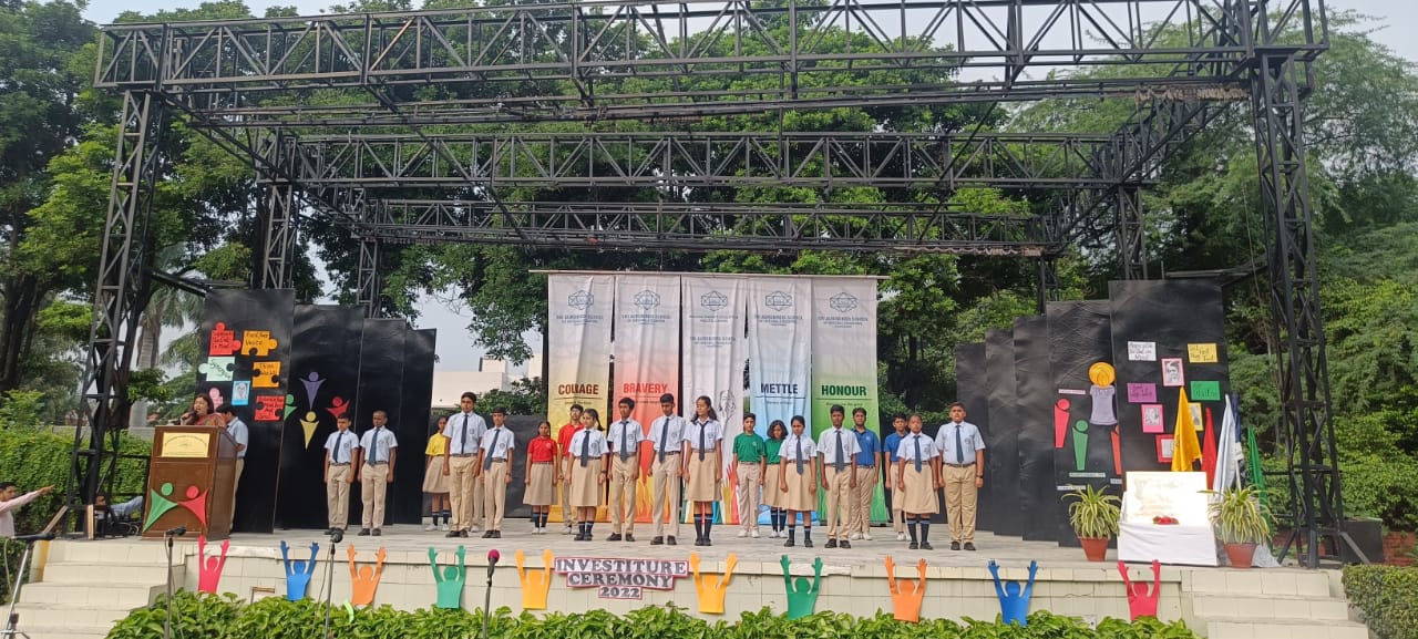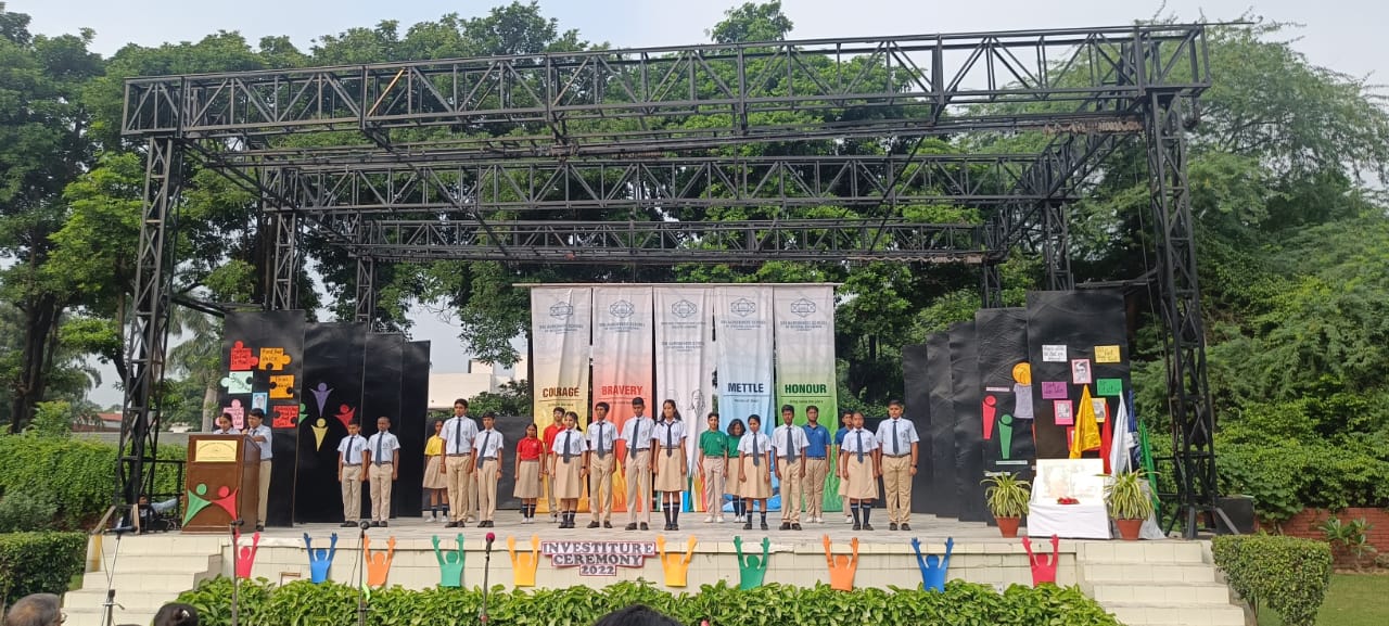 The Investiture Ceremony signified the reliance and confidence that the school consignedin the newly invested office. Donning the mantle of accountability, they pledged to bestow their duties to the best of their abilities.The excitement of the new council members was palpable as they marched in with their heads held high, ready to shoulder the responsibilities as student leaders. They were conferred with badges and sashes. The Principal, Mrs. Garima S Bhardwajcongratulated the student leaders and admonished them to be impartial and honest in discharging their duties. The Chairman, Mr.ArvindMehan exhorted them to uphold the valuesand be infused with the spirit to create a positive influence with their service as leaders. The student council took an oath to live up to the expectations and work with sync with the mission of the school. It was also a glorious moment as students of class X session 2021-22were felicitated with trophies for their outstanding performance in board exams.