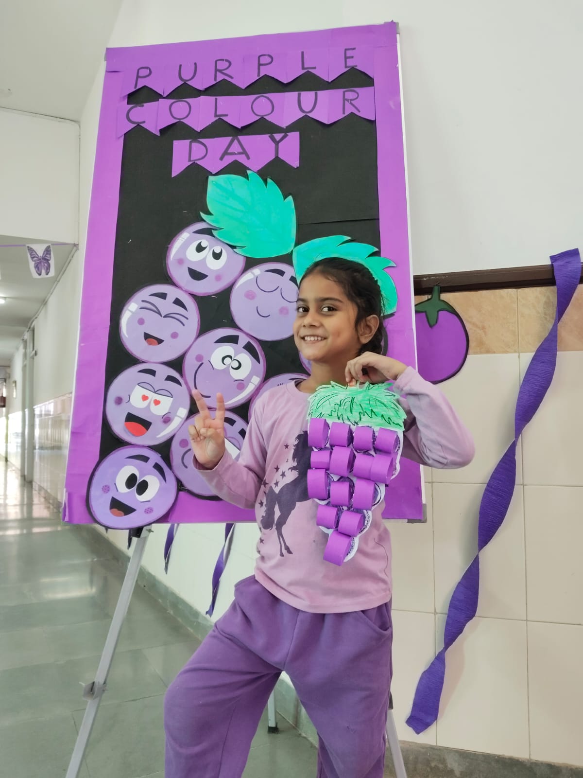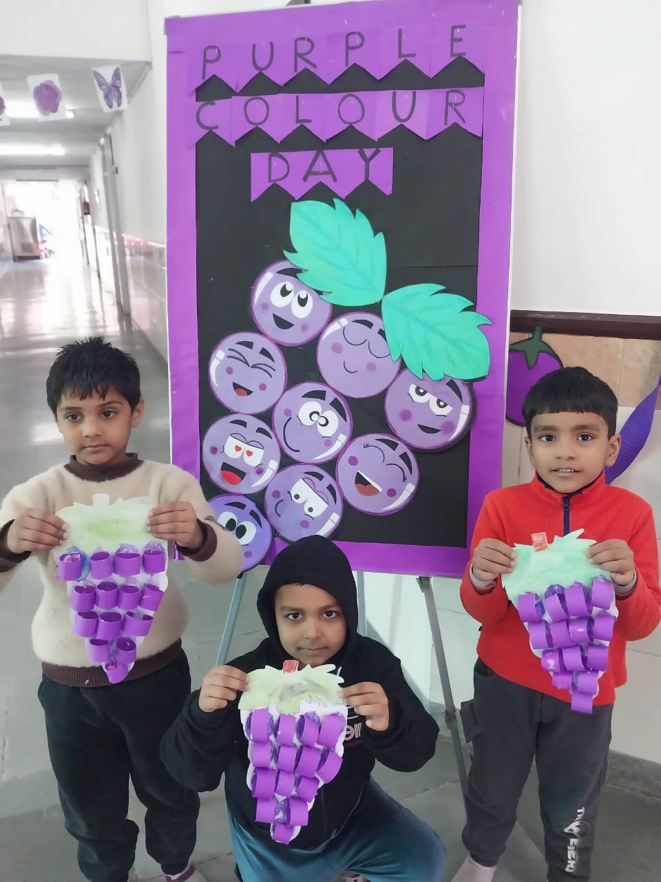 Our Kindergarten students joyfully celebrated Purple Colour Day with fun-filled activities and creative learning experiences. The little ones explored the beauty of the colour purple through engaging crafts, making lovely grapes clusters and lavender flowers. The classrooms and corridors were adorned in vibrant shades of purple, adding excitement to the celebration. Through hands-on art, games, and colour-based activities, children learned to identify and appreciate the colour while enjoying a memorable and colourful day.